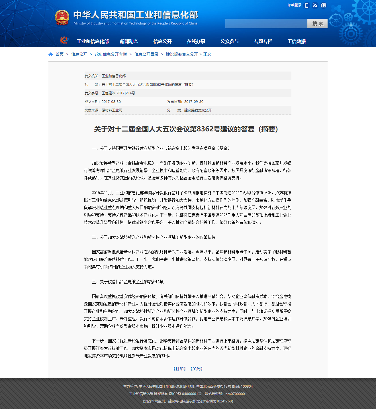 日前,國家工信部公開發布了《關于對十二屆全國人大五次會議第8362號建議的答復(摘要)》的文件,文件強調:鋁合金電纜是國家鼓勵發展的新材料產業,支持國家開發銀行建立新型產業(鋁合金電纜)發展專項資金(基金),支持改善鋁合金電纜企業的融資環境。